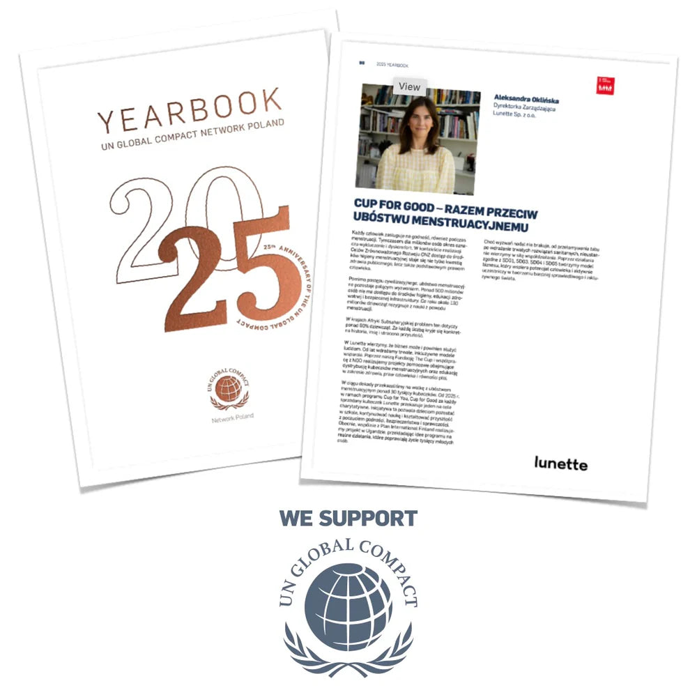 reusable menstrual cups to vulnerable communities worldwide. Lunette is also proud to support the UN Global Compact,